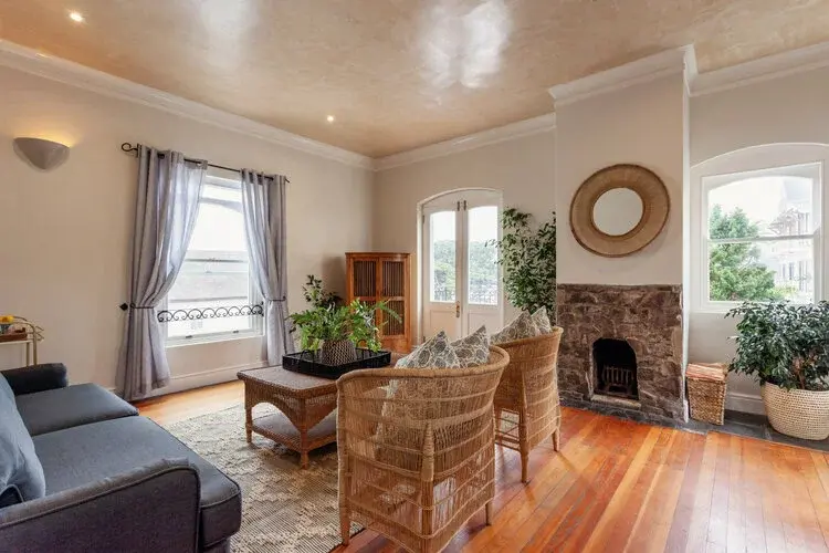 This spacious suite includes twin ¾ beds, an en-suite bathroom with both bath and shower, a separate lounge with wood-burning fireplace, a fully equipped kitchen, and a balcony with stunning sea views.